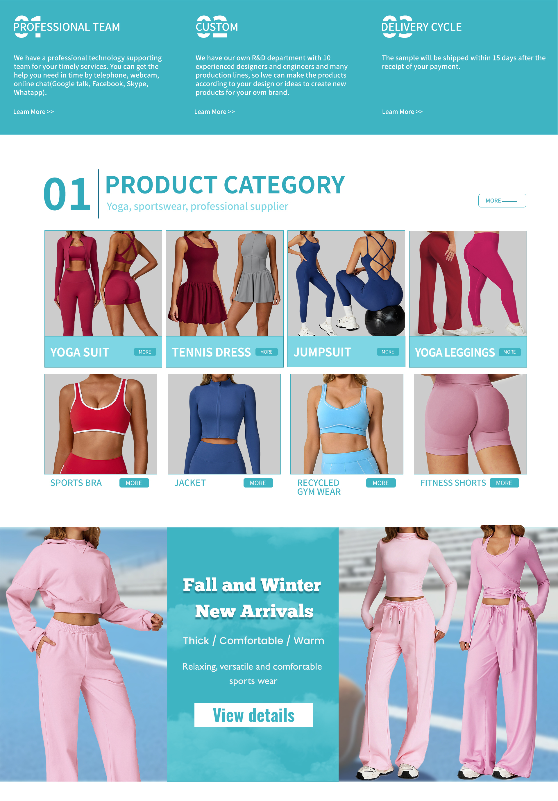 Productos principales:Ropa de yoga, ropa de fitness para gimnasio, ropa de yoga sin costuras, ropa de natación, camisetas deportivas de equipo